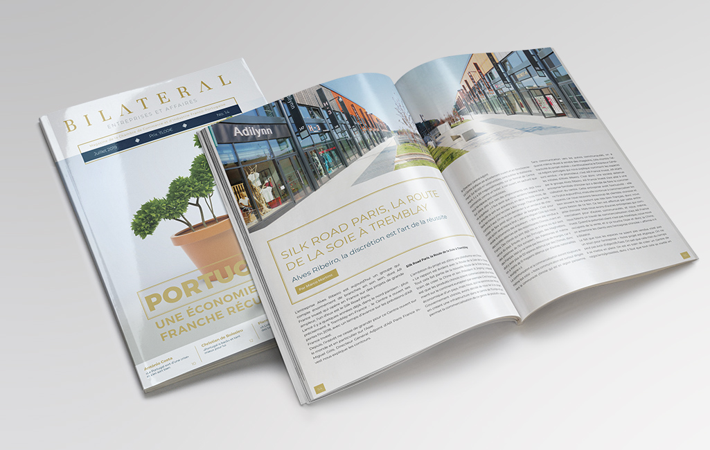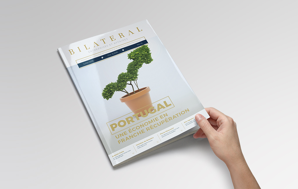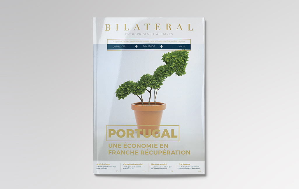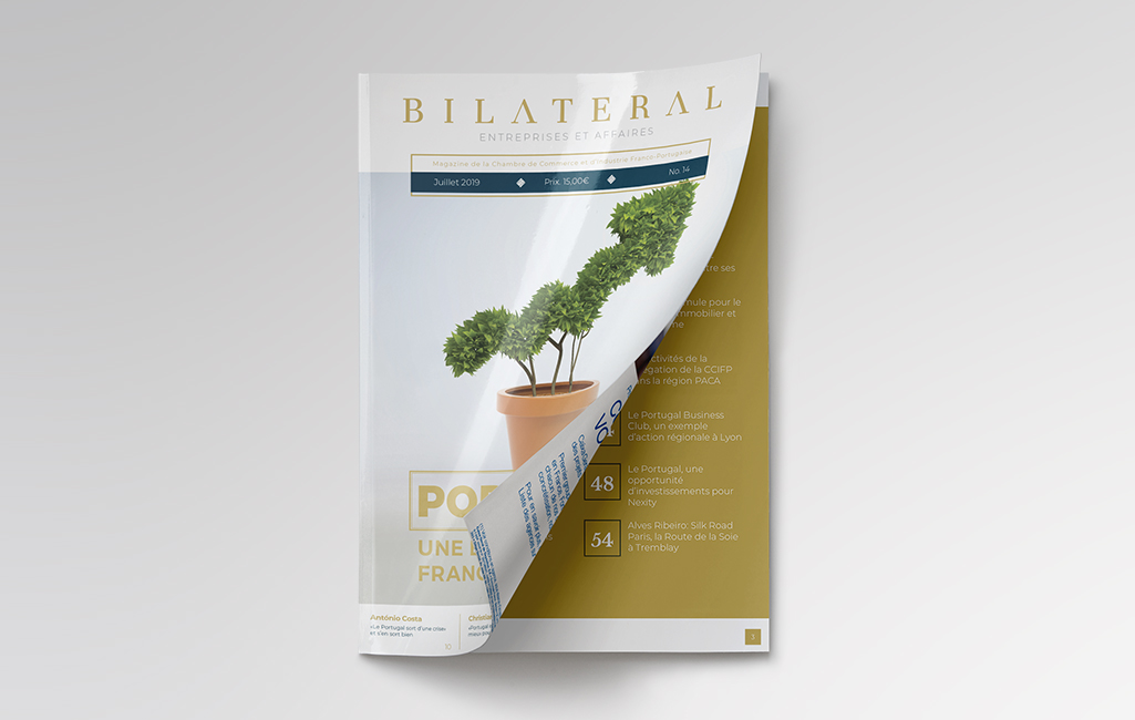 O projeto passava por criar um novo layout da revista “Bilateral” da CCIFP – Câmara de Comércio Franco-Portuguesa, de França. Partindo do conceito bilíngue da publicação e da relação entre os dois países, definimos as duas cores: o dourado e o azul – a metáfora de um dia perfeito: um sol que brilha no céu…  a relação nos negócios quando tudo corre “ouro sobre azul”. Criamos a assinatura da publicação através de vários elementos – circulos, retángulos, posicionamento dos títulos e sub-títulos, e o dourado do próprio título com um lettering elegante e distinto, marcam um novo layout em que procuramos elevar o prestígio desta revista.