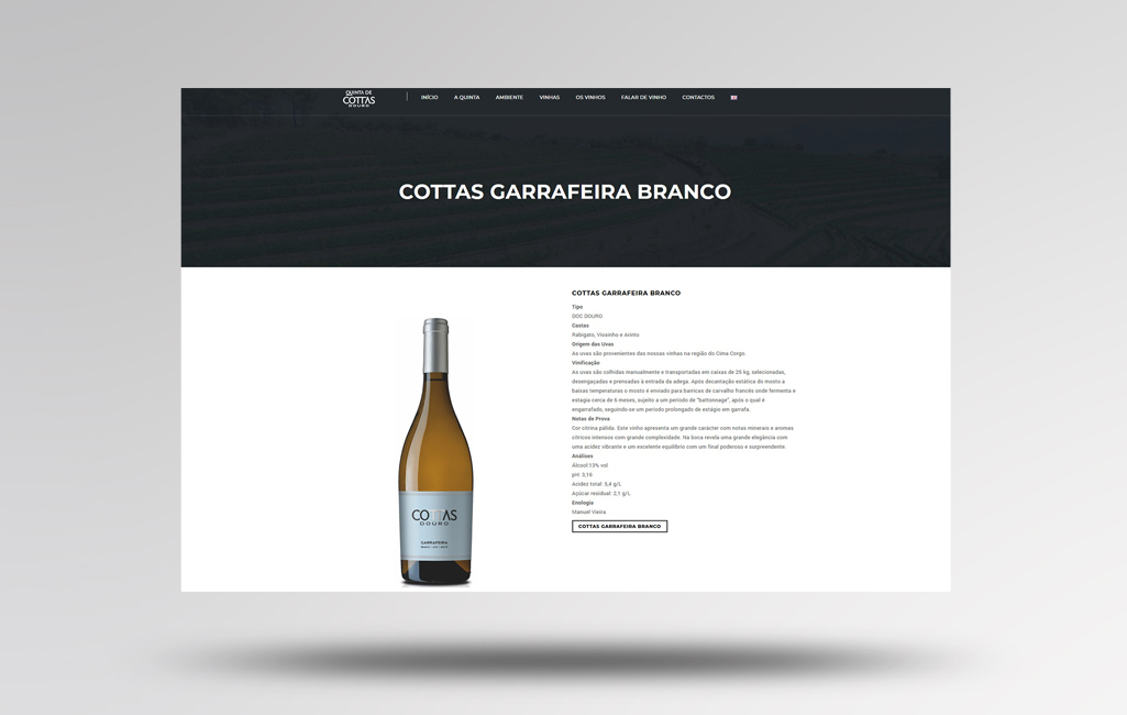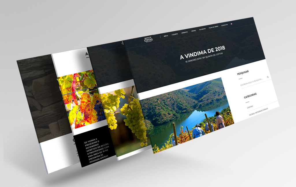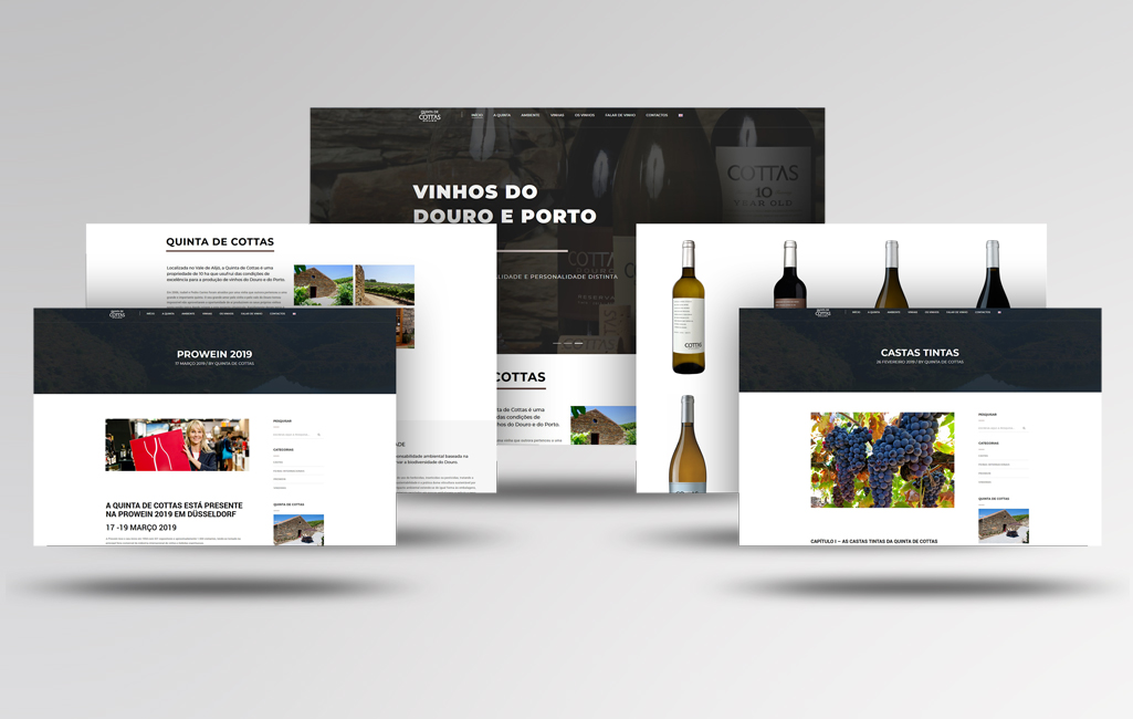 Um dos nossos projetos iniciais e que se mantém bem atual. Criar um website elegante e que fizesse correspondência com o prestígio da marca “Quinta de Cottas” era o desafio. Cada vinho apresentado tem a sua respetiva ficha técnica, que foi também concebida pela nossa agência. Deixamos o convite para visitar o website e não deixe de experimentar os seus vinhos de excelência.